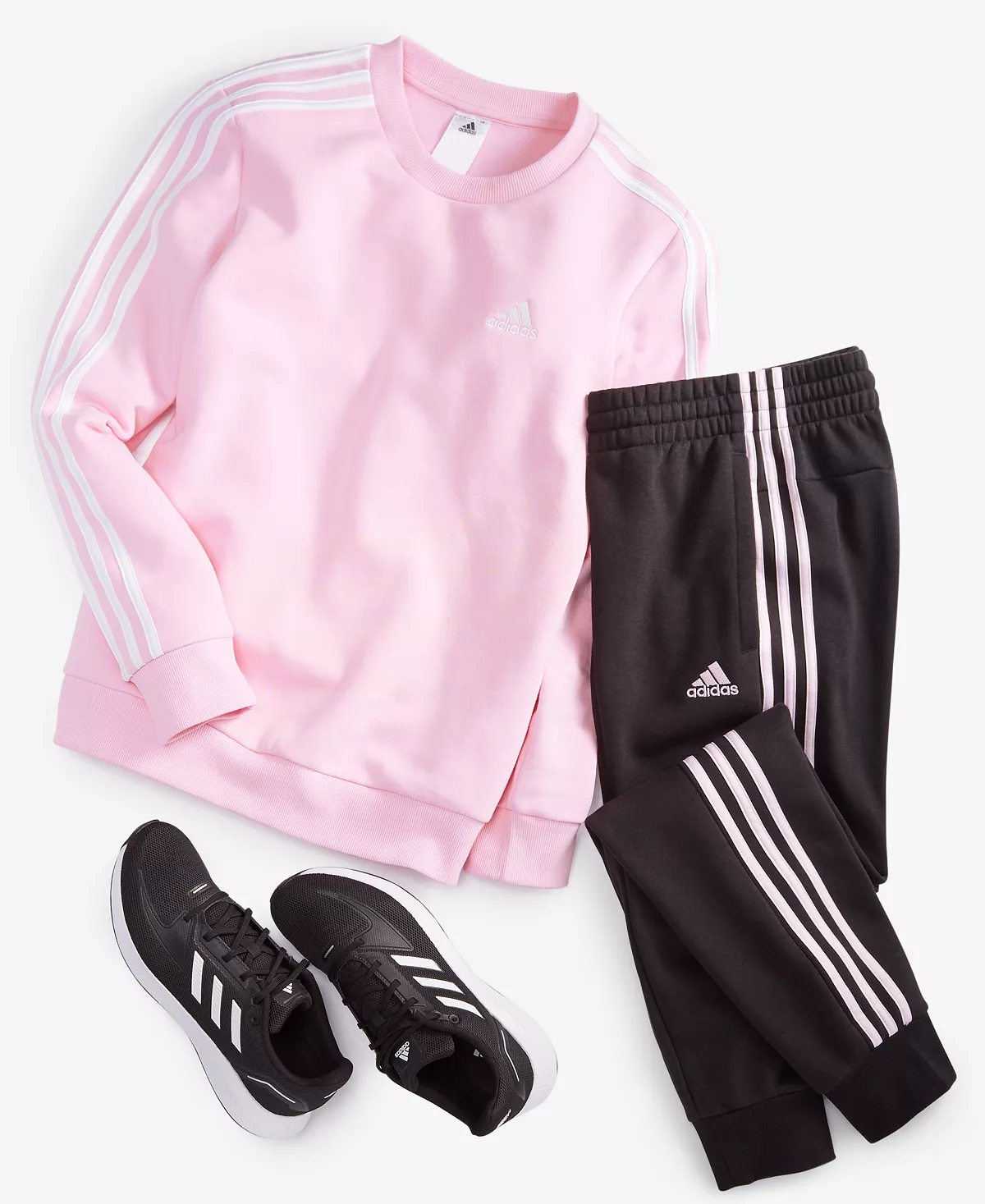 - Crewneck; logo at chest; 3-stripes trim