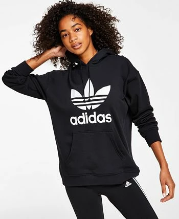 A crossover neckline and pockets at the sides freshen this adidas Originals hoodie. An oversized logo lends a sporty touch to the comfy french terry top.