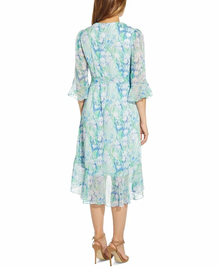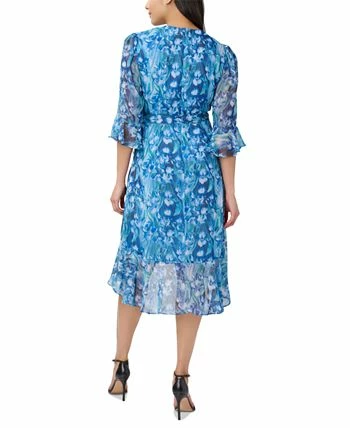 Watercolor-inspired florals and a flowing hem draw the eye in this flattering wrap-style dress from Adrianna Papell.