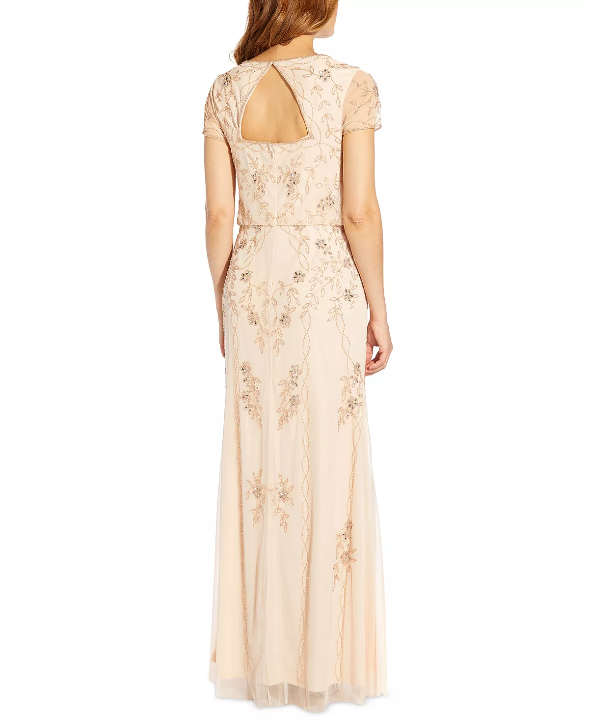 Adrianna Papell’s embellished blouson-bodice gown makes a stunning choice for your next special event.