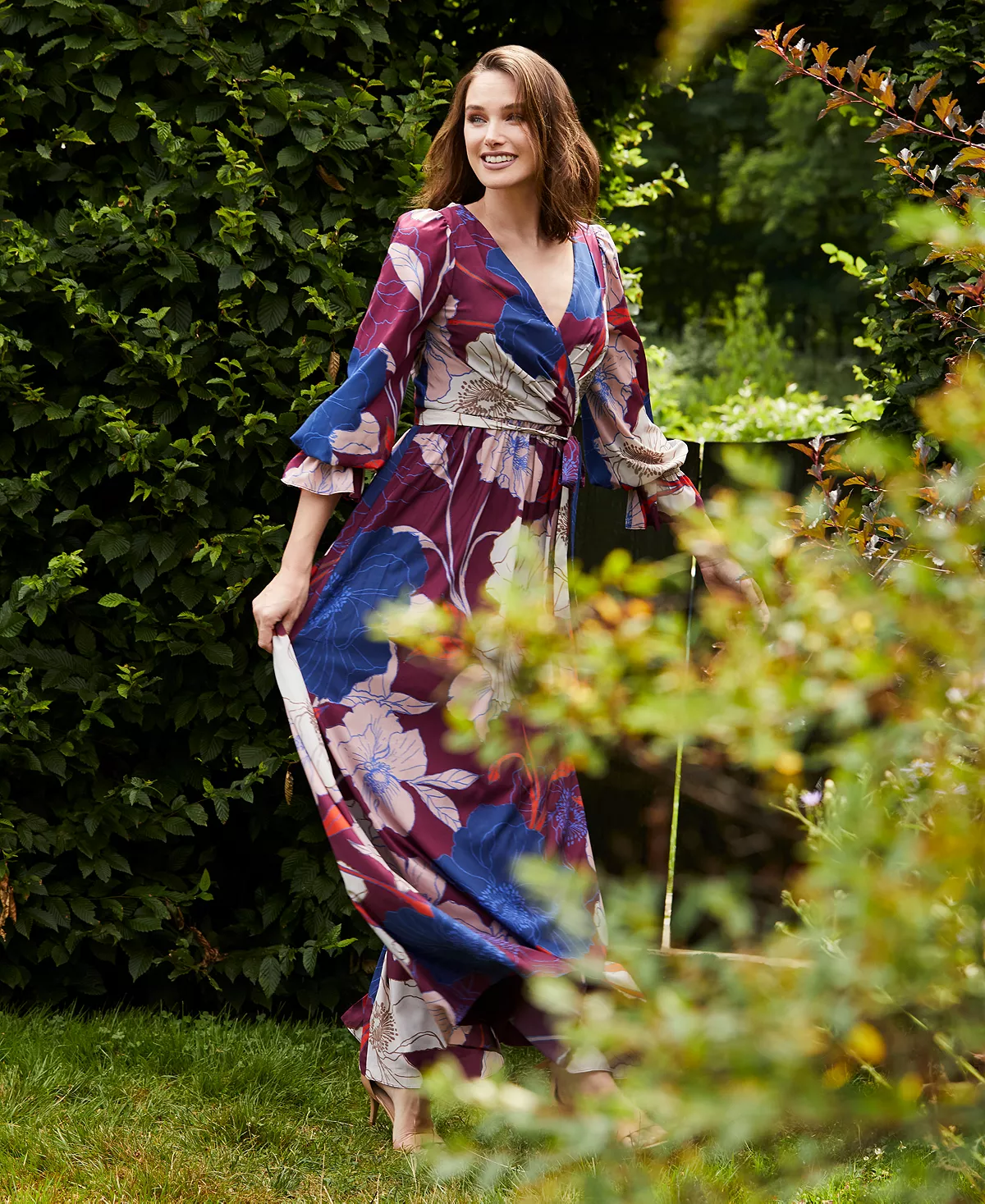 Glide across the room in understated elegance in this floral print dress from Adrianna Papell, a delightful floral addition to any formal-wear closet.