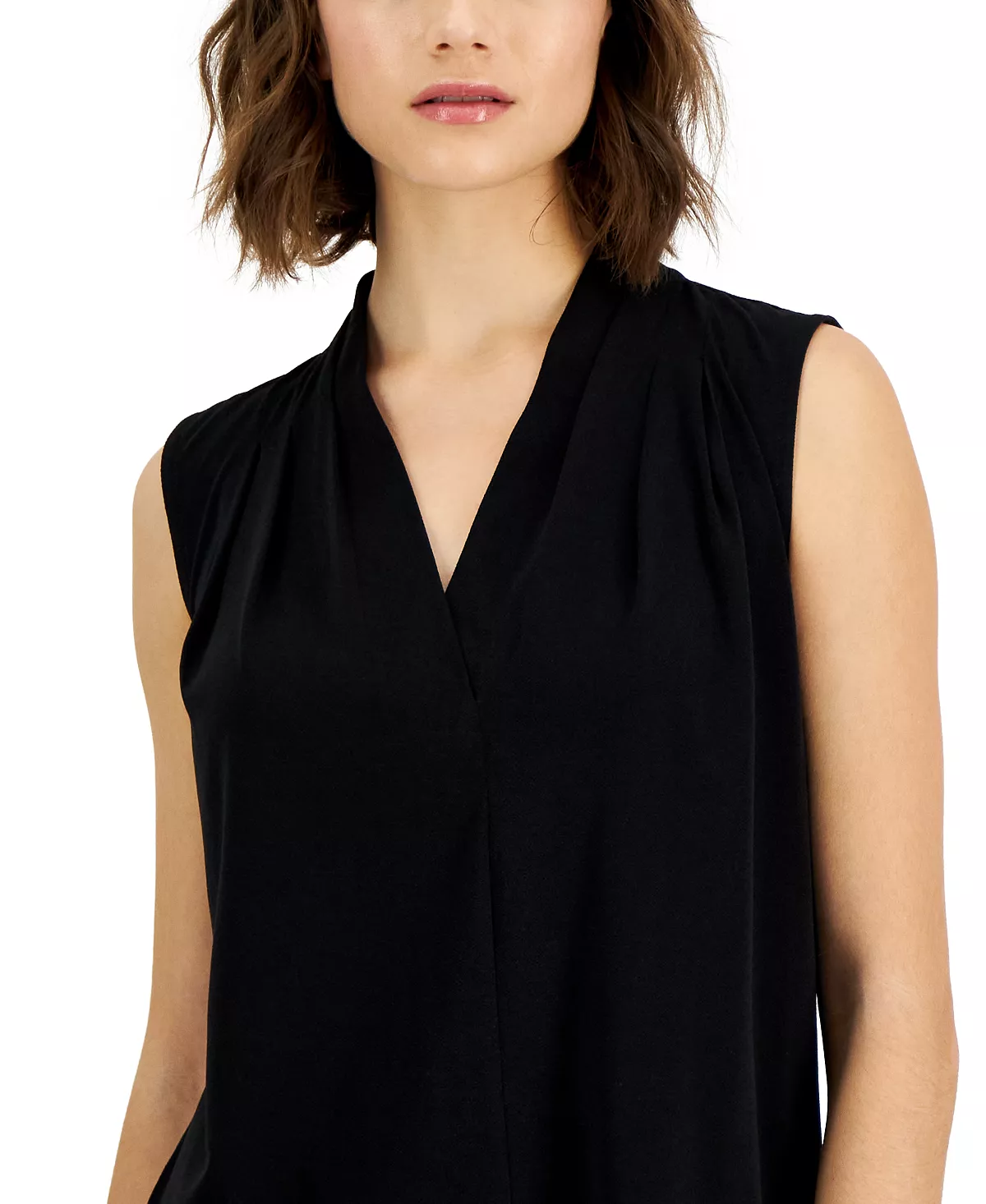 Explore the stylish possibilities with this sleeveless Alfani top, a versatile piece polished with pleats at the neckline.