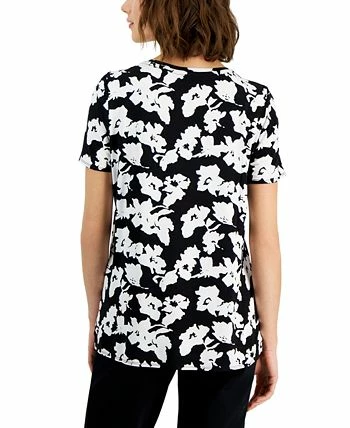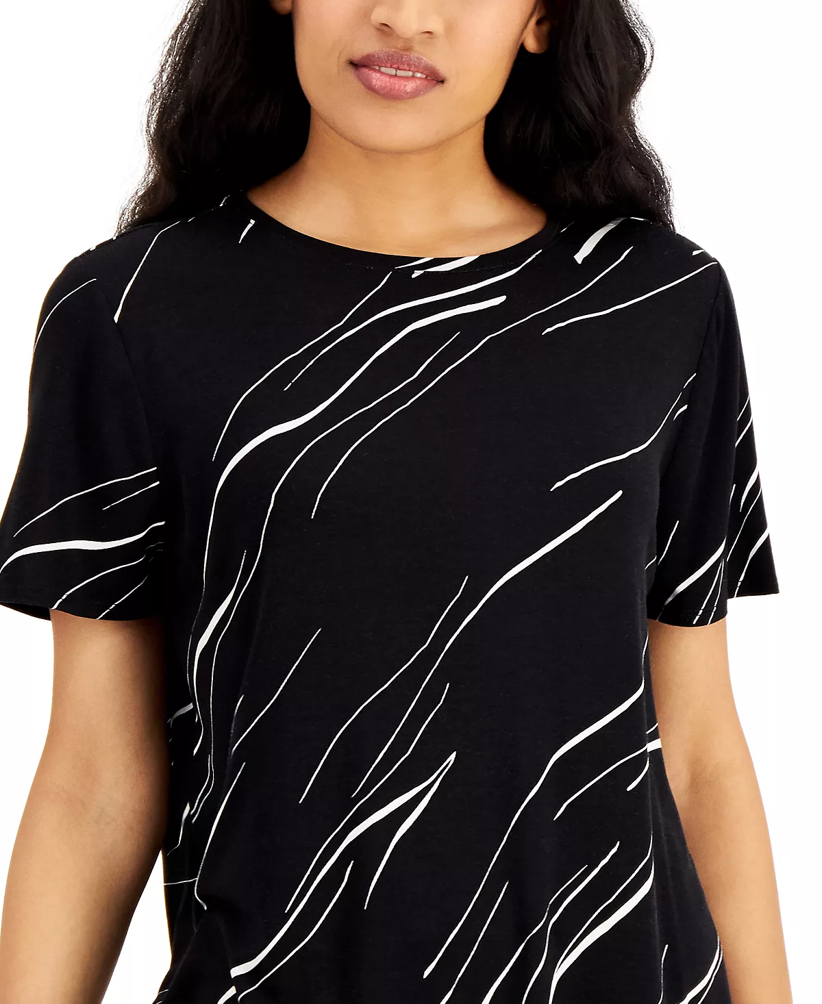 Upgrade your T-shirt look to this Alfani top, a fun printed piece finished with a step hem.