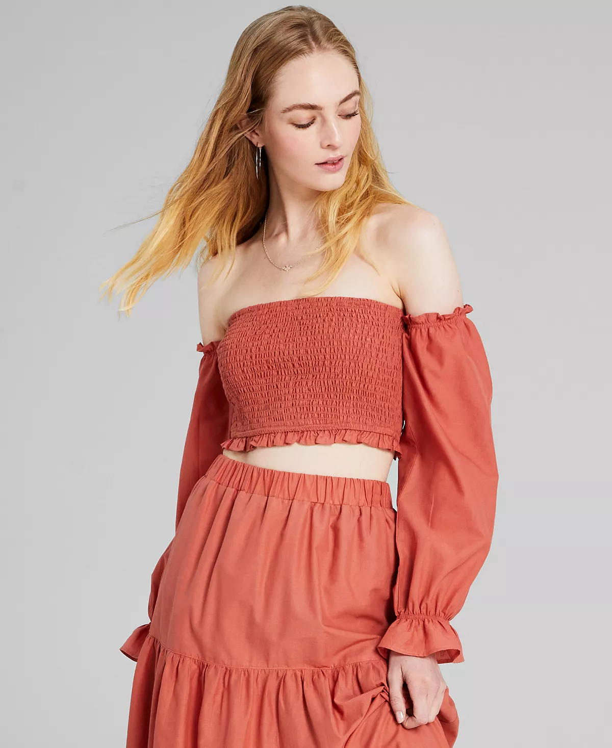 Smocking lends a figure flattering look to this women’s top from And Now This, fashioned from all cotton for a cool, crisp finish.