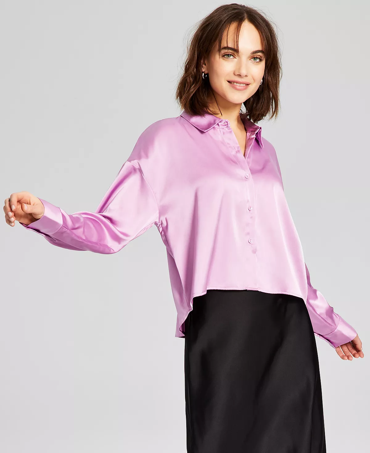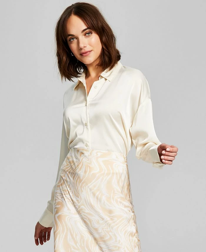 Sleek, soft and fluid this satin shirt by And Now This is finished in a draped silhouette, for a gorgeous look that always adds movement and shine to your ensemble.