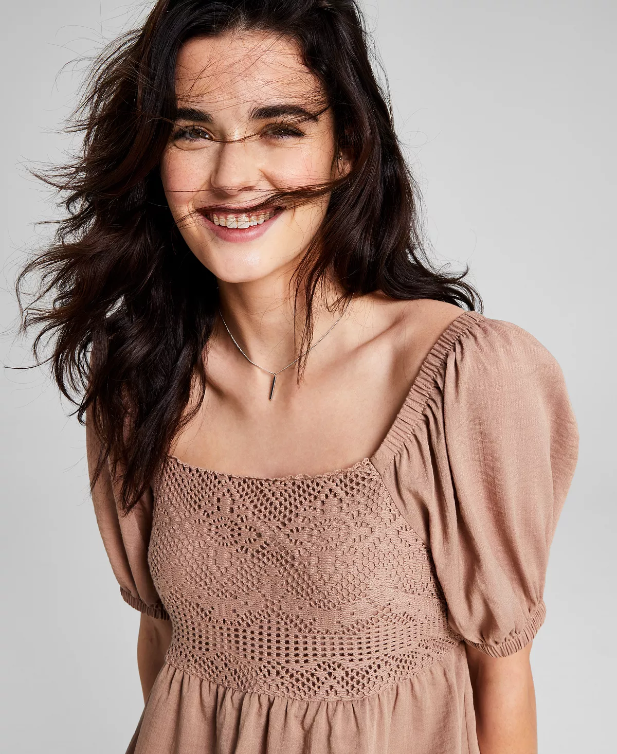 And Now This Women’s Square-Neck Crochet Mini Dress