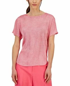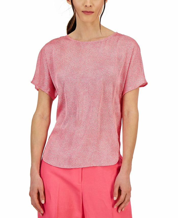 An allover tiny dot print draws the eye in this flowing bateau-neck top from Anne Klein.
