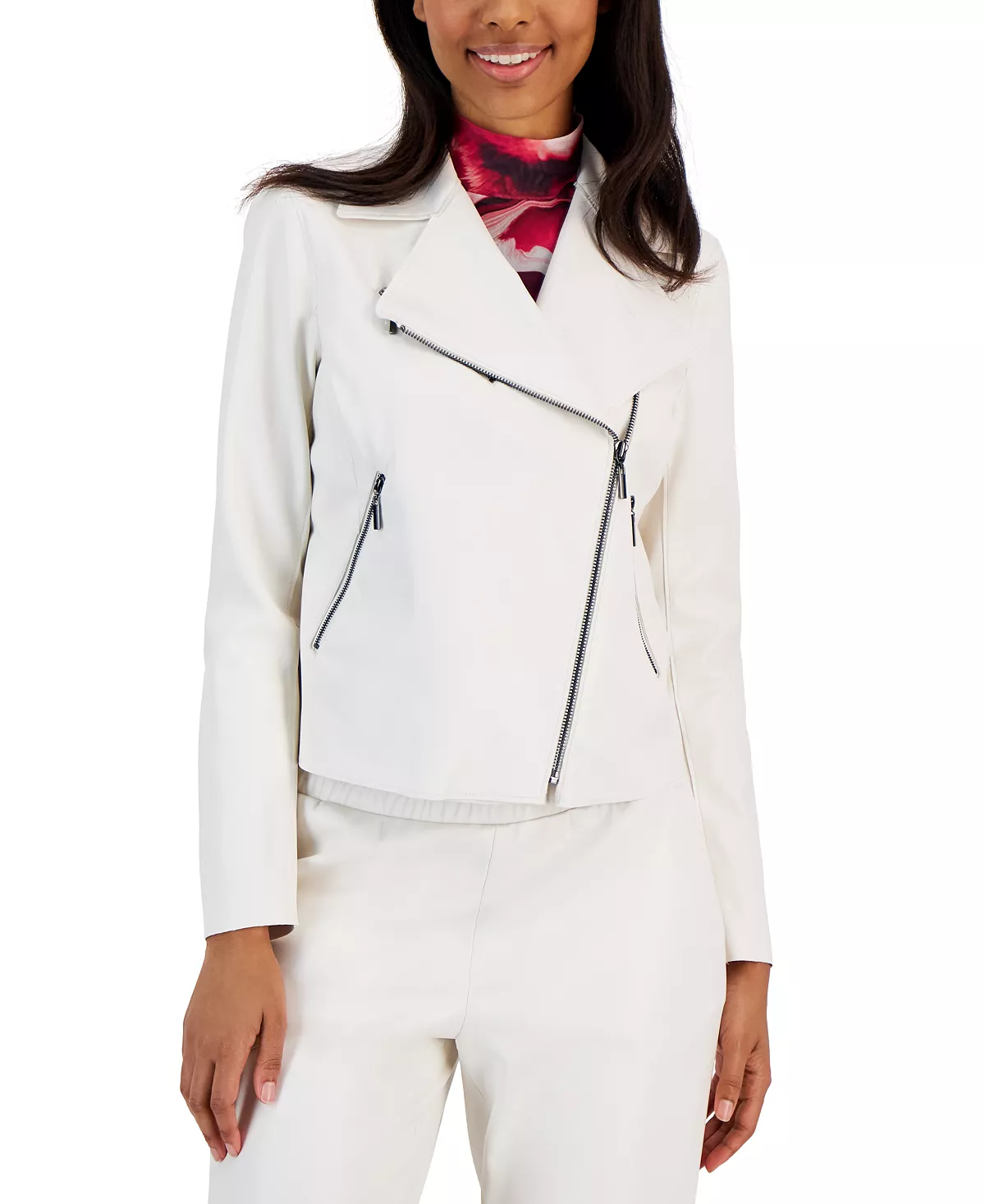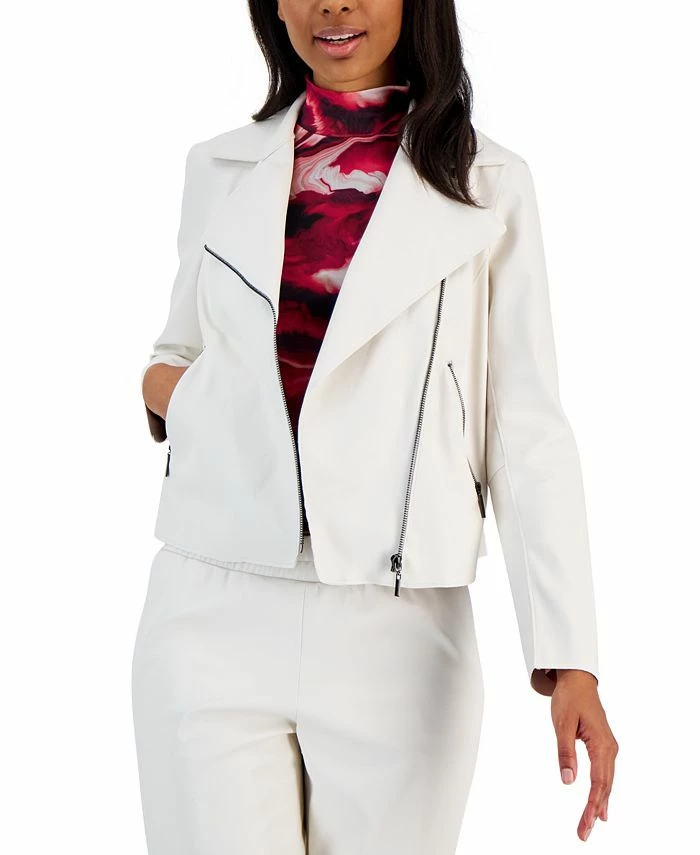 Anne Klein Women’s Faux-Leather Zip-Front Moto Jacket