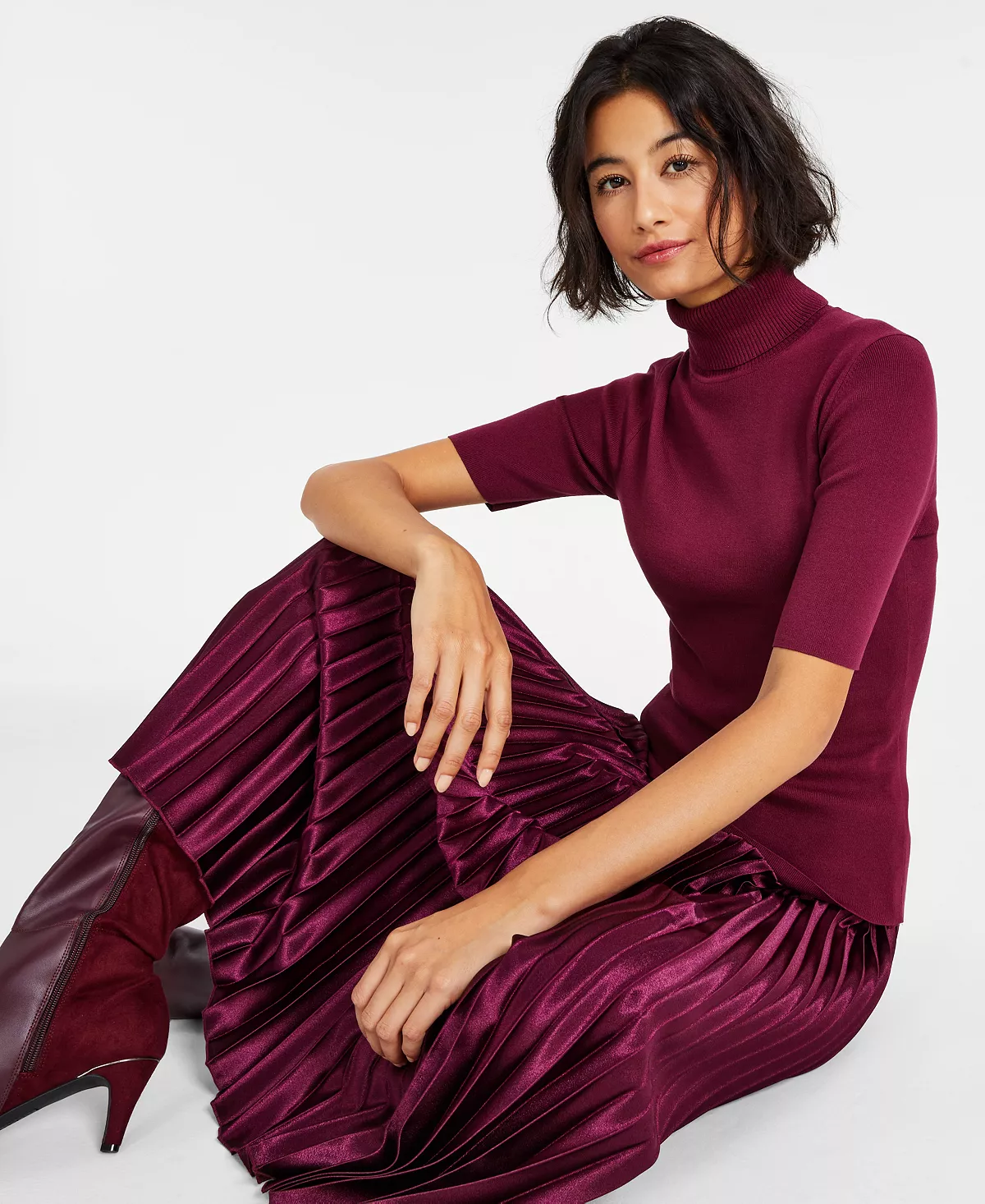 Tuck this sophisticated look into trousers and pencil skirts for the perfect office outfit. Anne Klein’s half-sleeve turtleneck is a versatile addition to your collection.