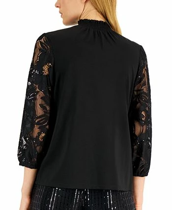 Anne Klein Women’s Mixed-Media Lace-Sleeve Top