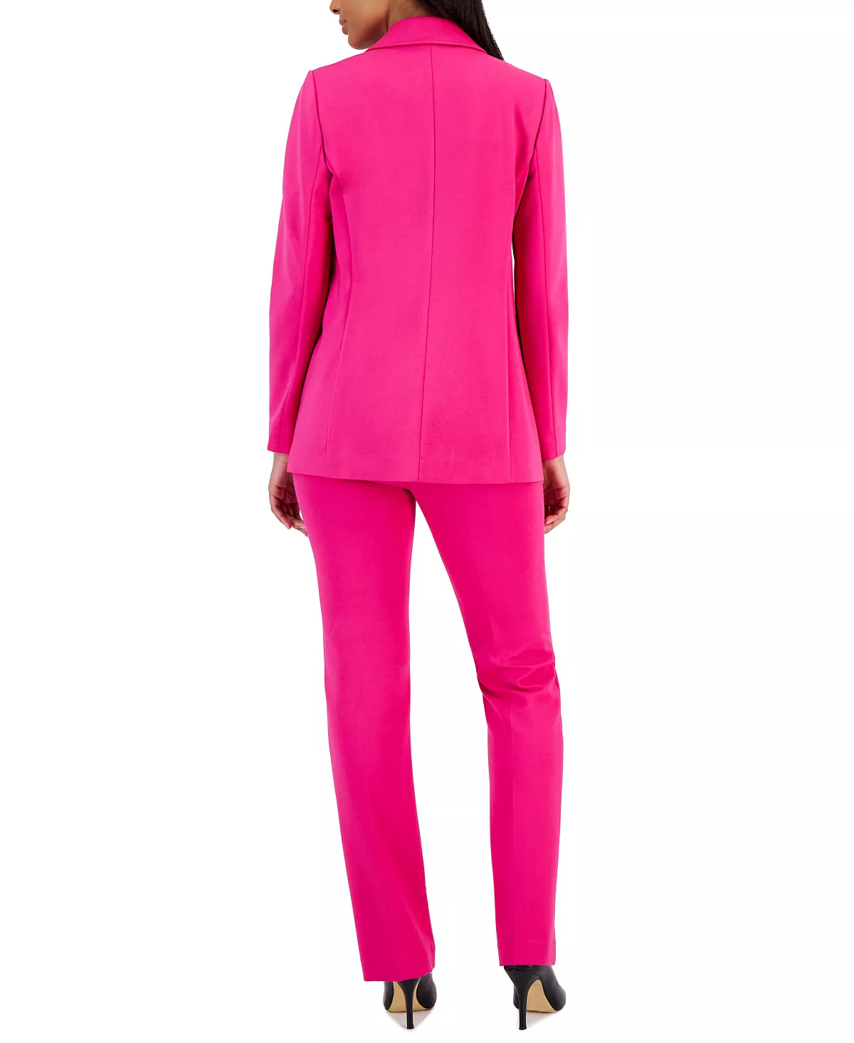 Monochrome suiting is having a major moment. Work the trend into your rotation with Anne Klein’s streamlined ensemble—a tailored blazer, satin blouse and matching pants.