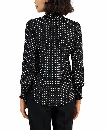 Lend a little whimsy to your career collection with this beautifully printed top from Anne Klein designed with a tie at the neckline.