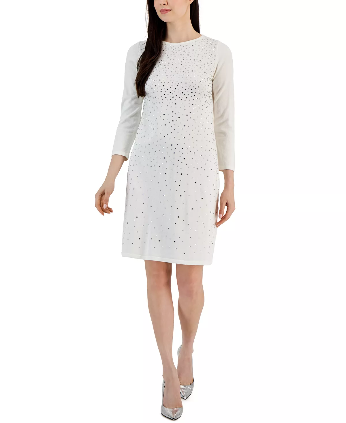 Anne Klein has you covered from workdays to dinner dates with this elegantly studded sweater dress.