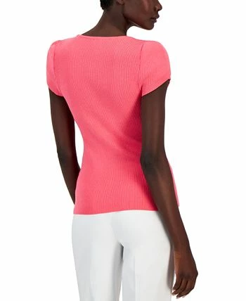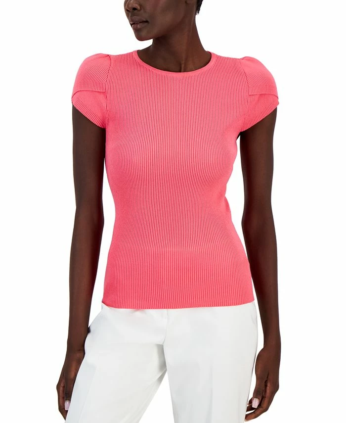 Tulip sleeves lend an elegant feel to Anne Klein’s crewneck sweater.
