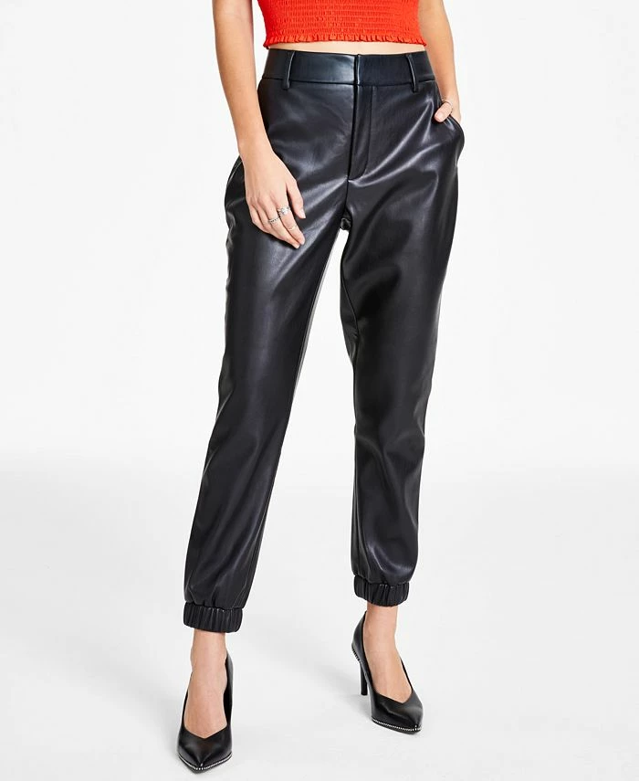 Bar III upstyles the popular jogger silhouette with a faux-leather silhouette on these fashion-forward pants.