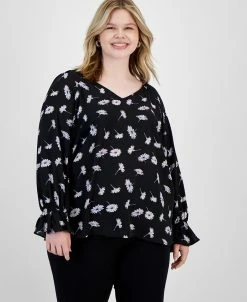 Bar III creates a soft feminine look in this top. Designed with cinched sleeves and complimented with an all-over floral print, this is sure to be your new favorite blouse.
