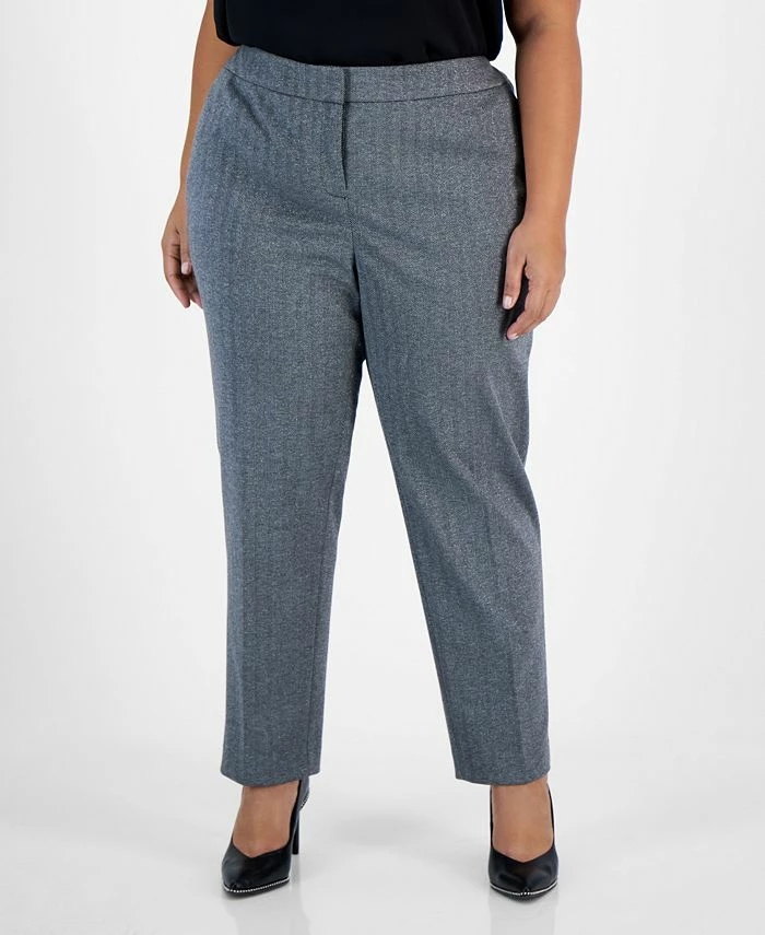 Lend a little shimmer to your workweek look in these plus size Bar III pants designed with a herringbone print and metallic detail.