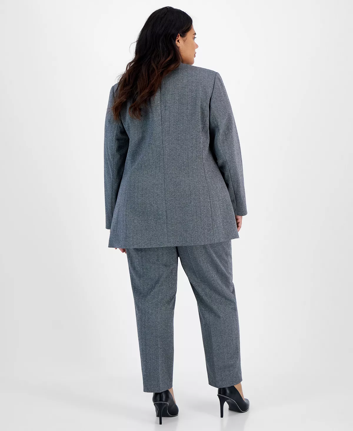 You’ll be the envy of the office in this polished look from Tahari ASL featuring a matching blazer and ankle pants in a shimmery herringbone print.