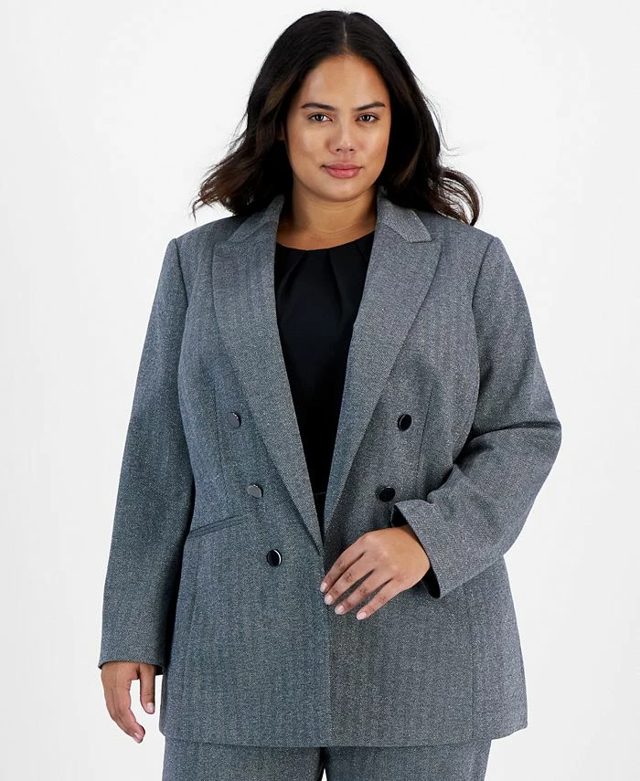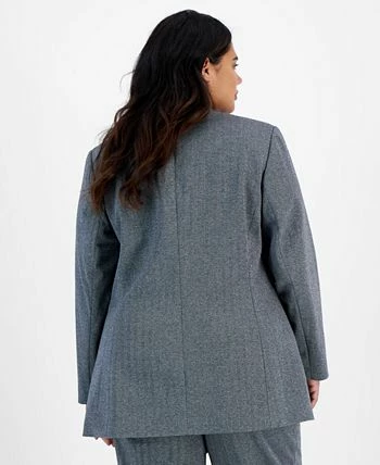 A hint of stretch helps create a custom fit in this plus size blazer from Bar III, designed with a shimmery herringbone print throughout.
