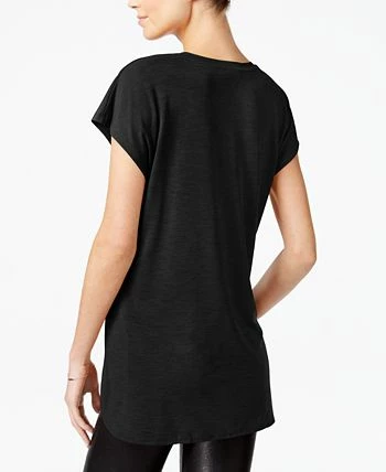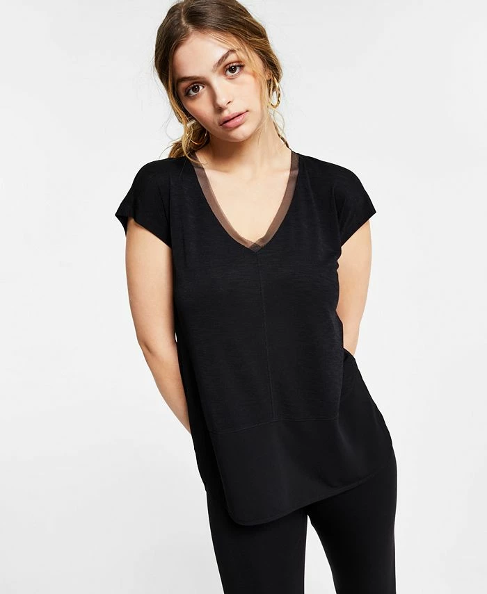 A smooth contrast hem lends airy style to this chic, lightweight top from Bar III.
