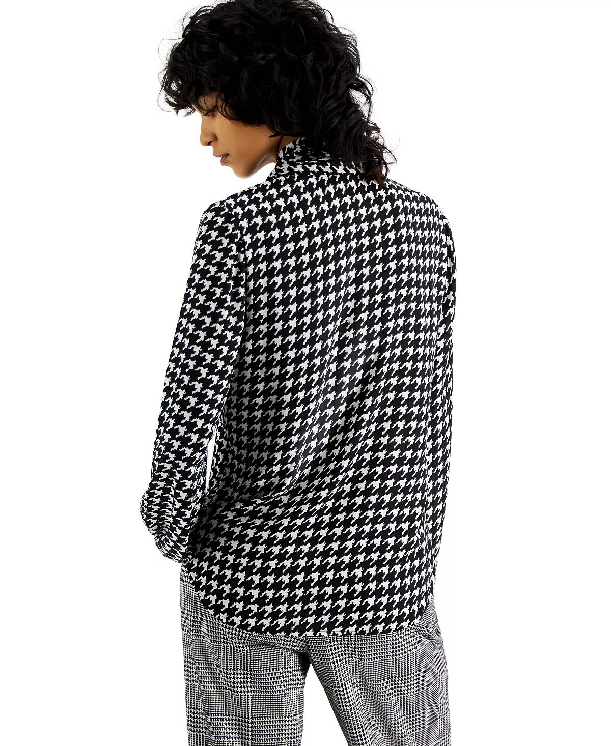 Add polish to any look with this sophisticated Houndstooth long sleeve top from Bar III.
