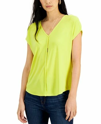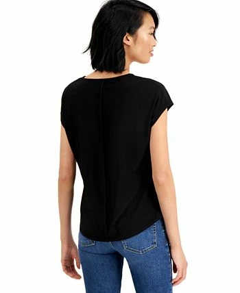 A fashion-forward twist on the T-shirt, this V-neck top from Bar III features a prominent seamed detail at the front.