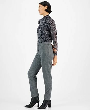 Tailored in timeless herringbone, with a touch of shimmer and a hint of stretch, these Bar III straight-leg ankle pants refresh a workday wardrobe.