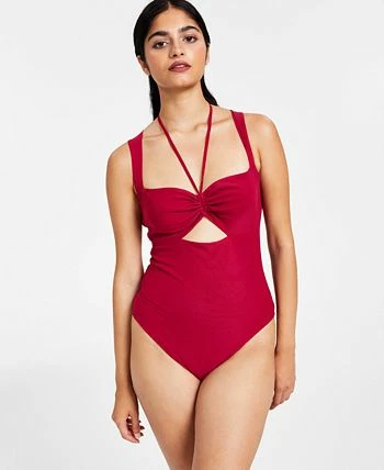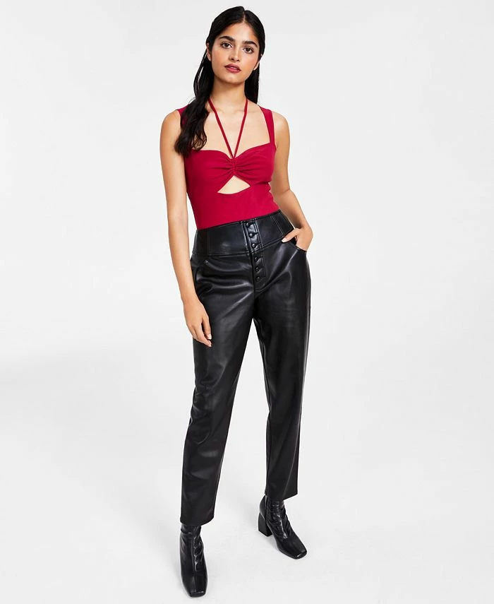 Bar III keeps your top tucked in all night with this sleek sleeveless bodysuit, a chic sweetheart-neck design finished with an edgy front cutout.