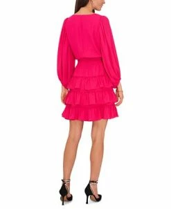 A geometric chiffon print delivers a modern look to Black Tape’s stylish balloon-sleeve sheath, a smart pick for a shower or celebration.