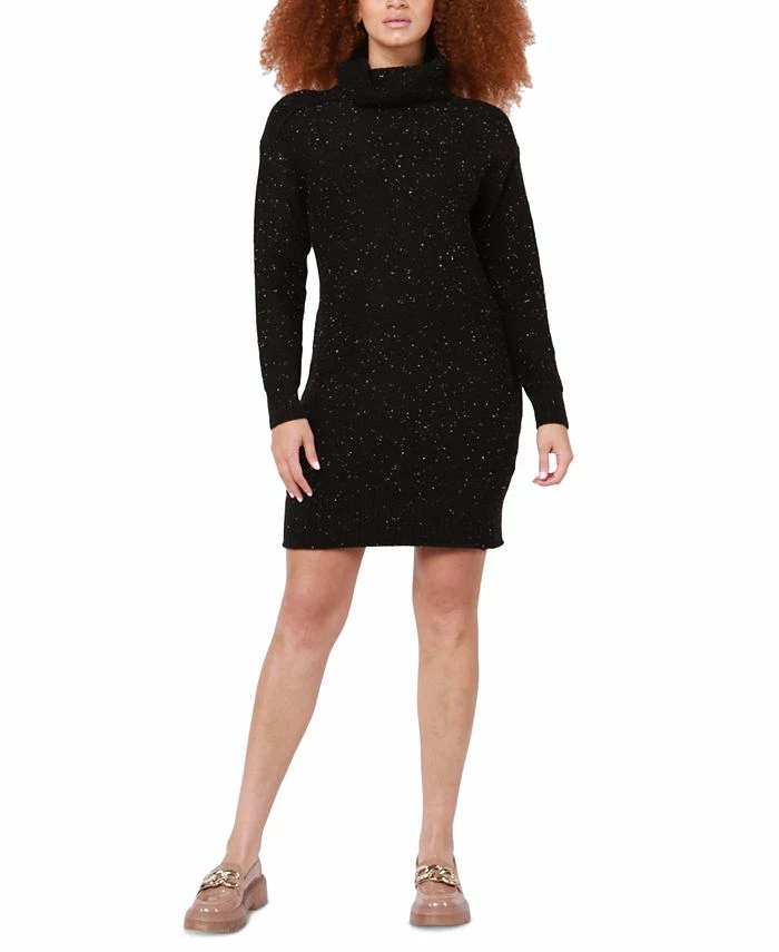 A cozy turtleneck pairs with a cute back cutout for a fresh take on sweater dress styling from Black Tape.