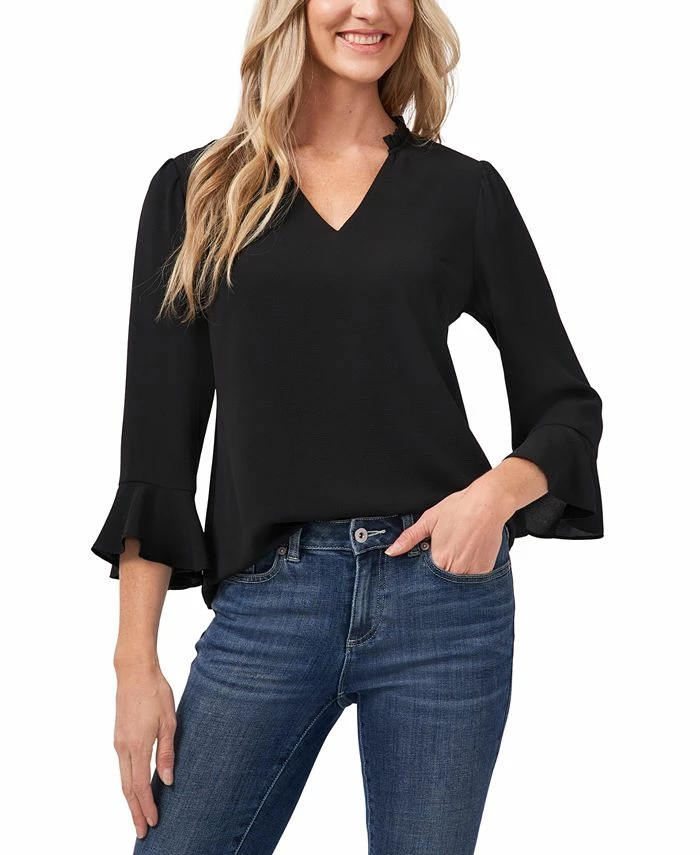 Dramatic ruffled sleeves bring a mega dose of flair to this pretty V-neck top from CeCe.