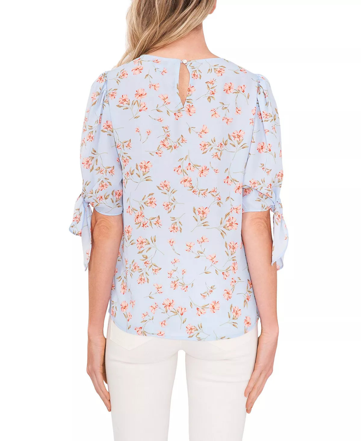 CeCe Women’s Coastal Floral Tie Sleeve Blouse
