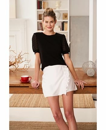 The pop of dots at the sleeves brings sheerly sweet style to CeCe’s mixed-media top.