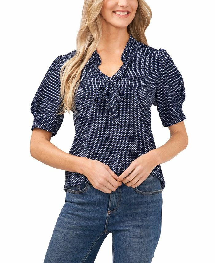 CeCe Women’s Printed Tie-Neck Blouse Top