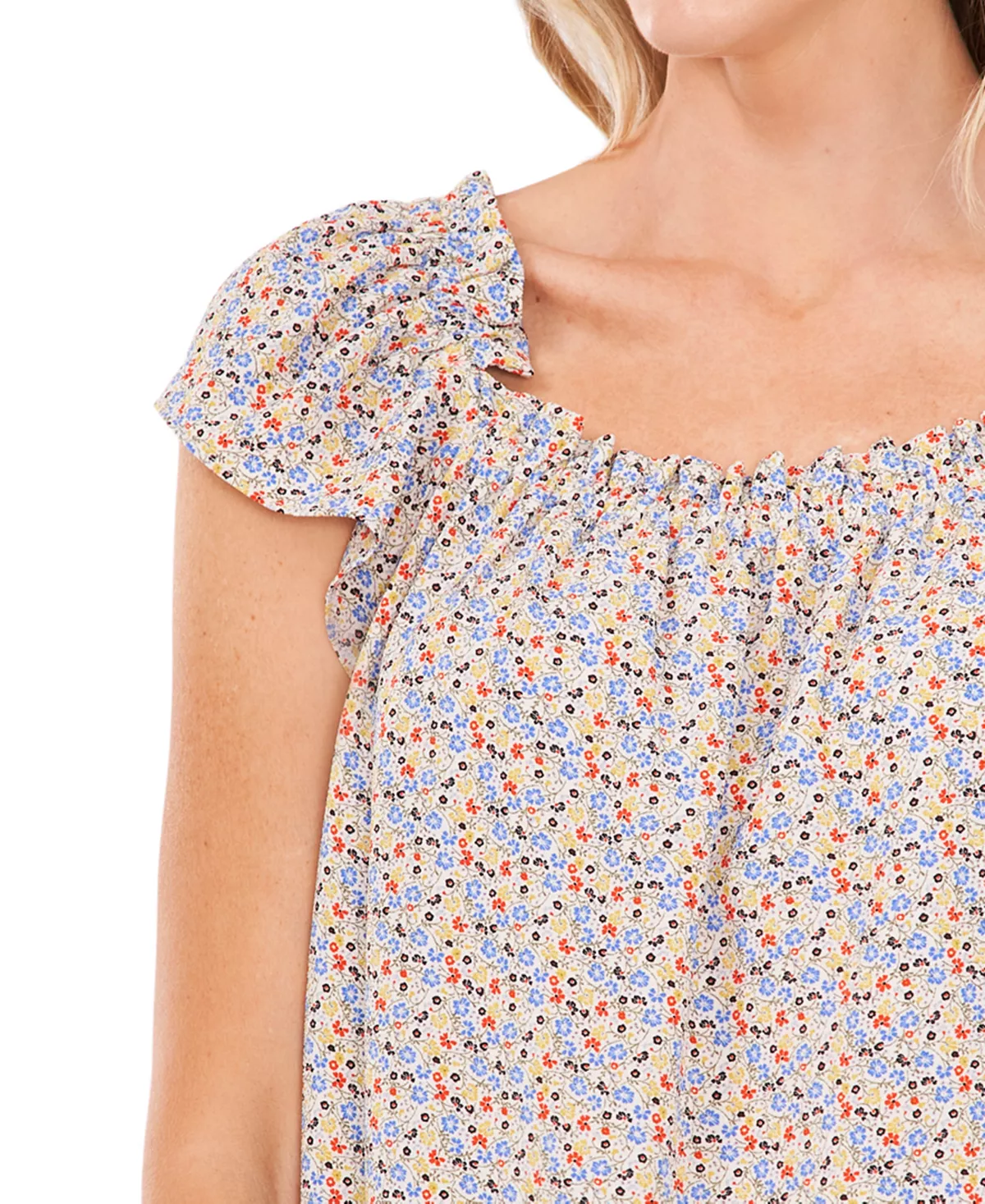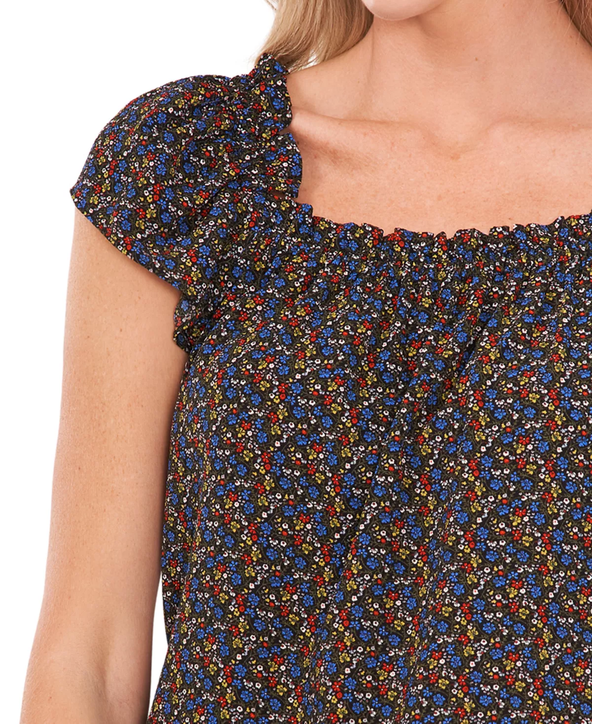 CeCe Women’s Ruffled Square-Neckline Floral Blouse