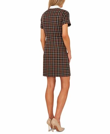CeCe elevates a retro-inspired look with a Peter Pan collar and a stunning rhinestone button detail down the front.