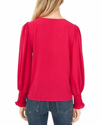 Dainty sheer sleeves with smocked cuffs frame this V-neck soft texture blouse from CeCe.