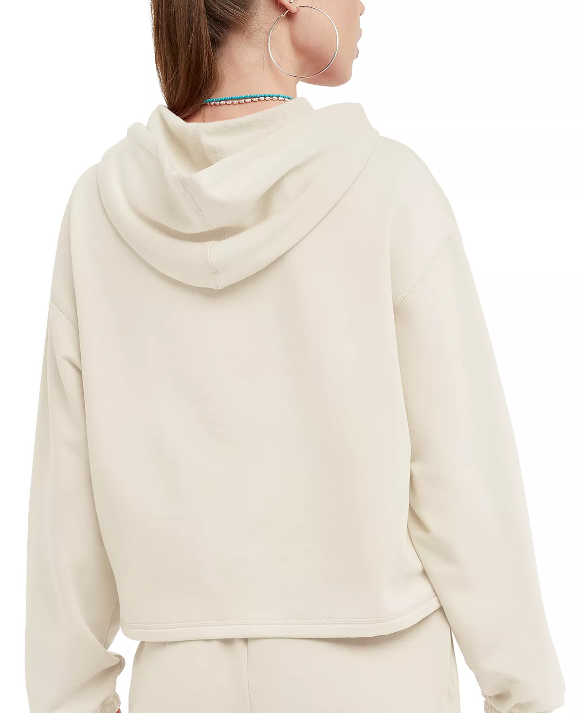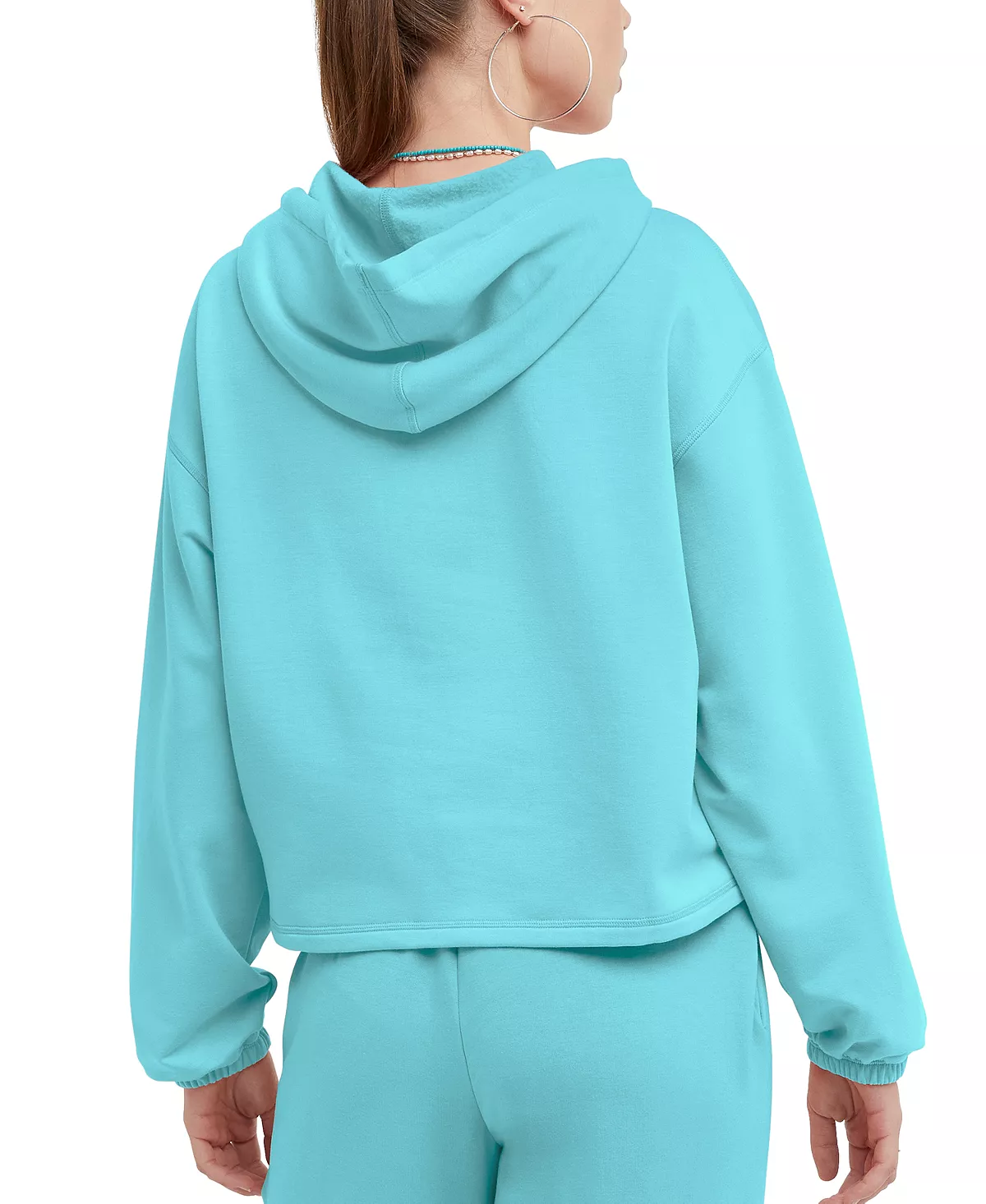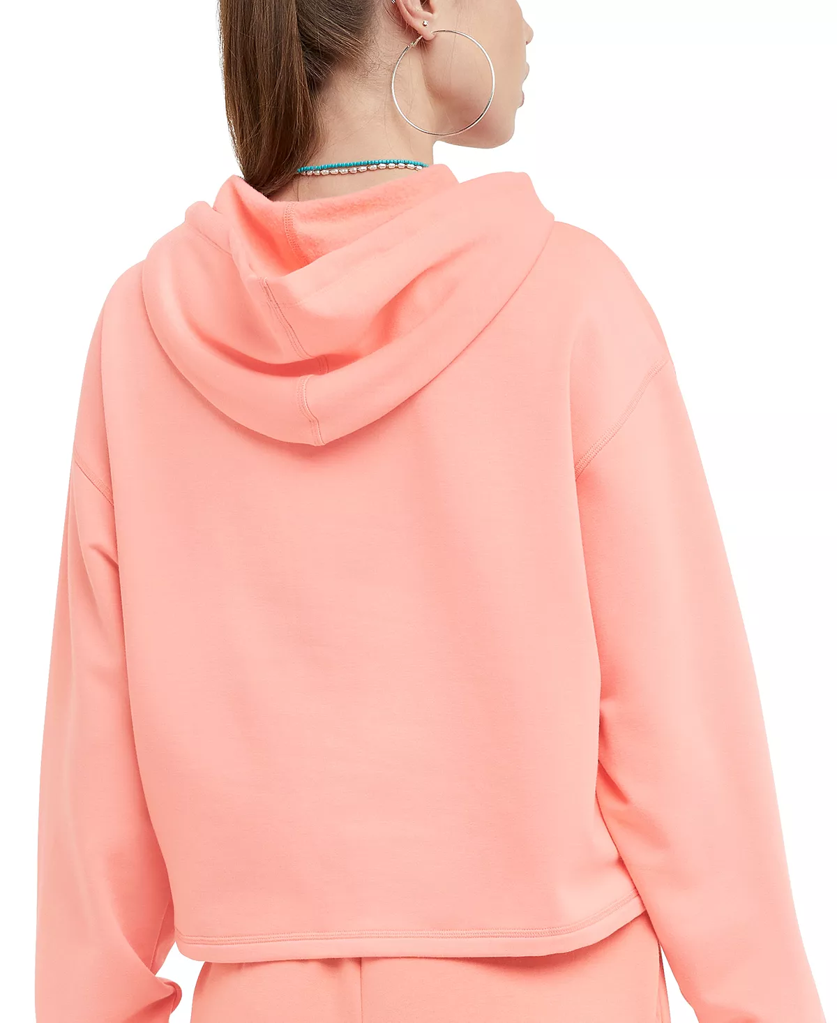 Get comfy in Champion’s cozy hooded sweatshirt, a modern cropped design in a loose fit.