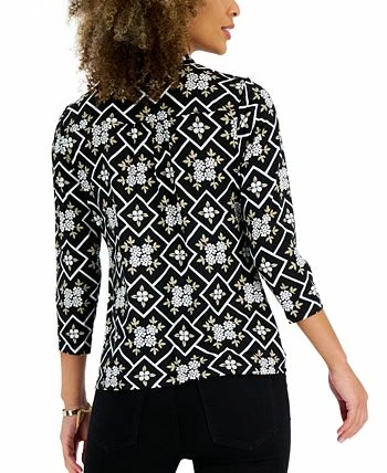 Ease into style with this Charter Club top, complete with a neckline accented by a point collar and an all-over beautiful print.