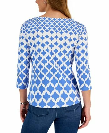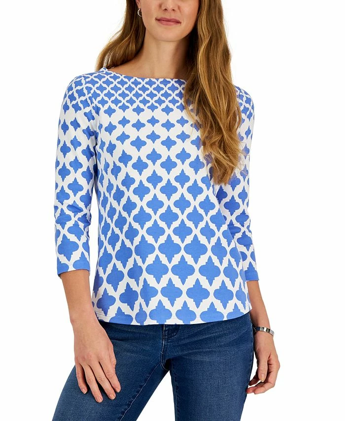 A bold print brings fresh style to this Charter Club top, in all-cotton knit with 3/4-sleeves.