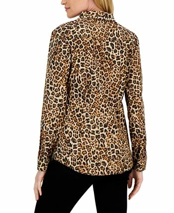 Showcase fierce style with this stunning leopard print top from Charter Club; the look is elevated with an ultra-chic embellishment at the collar.