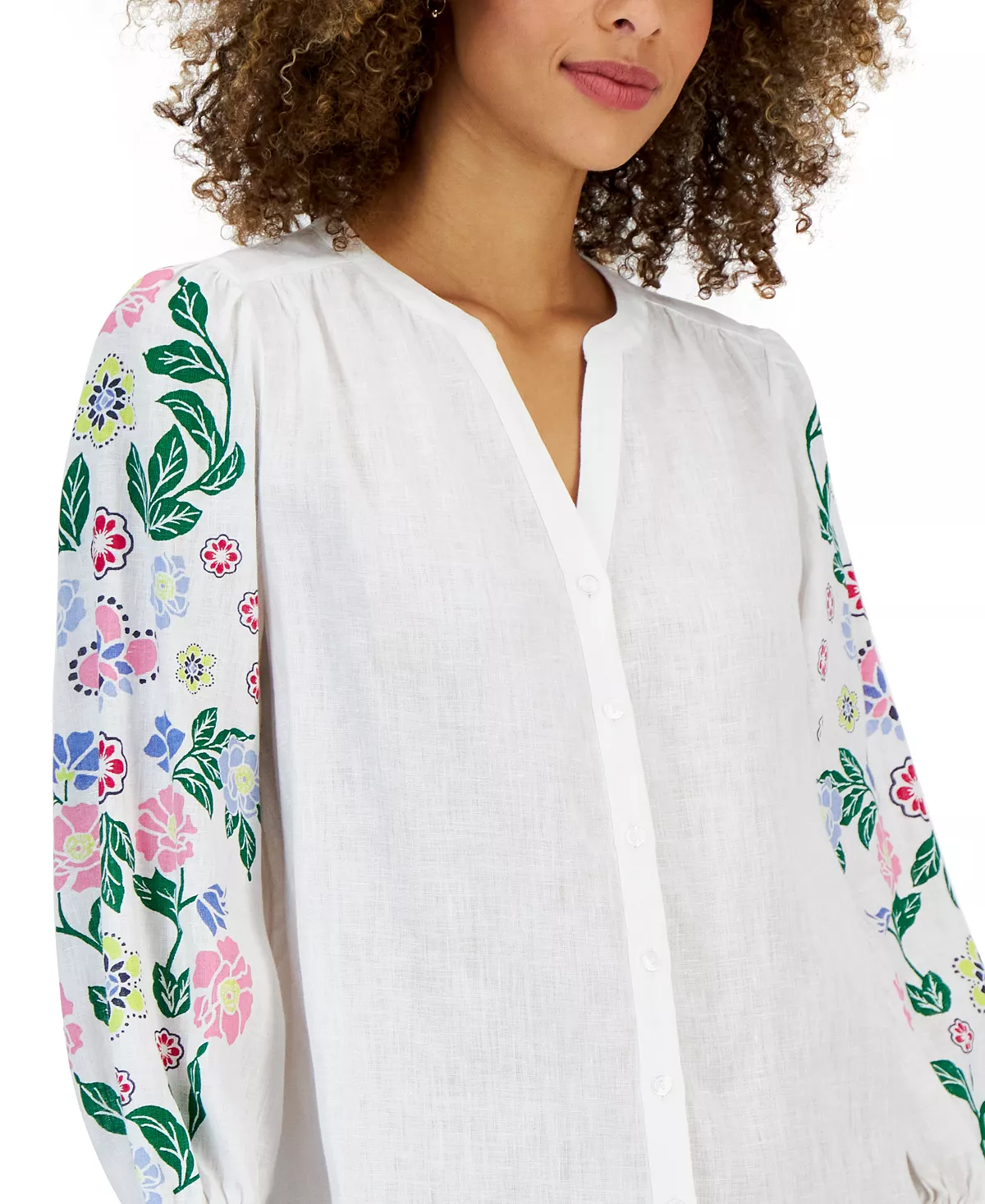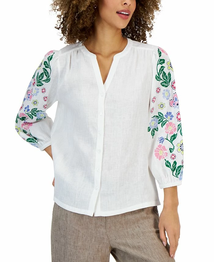Charter Club Women’s Linen Printed Button-Up Top, Created For Macy’s