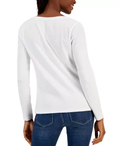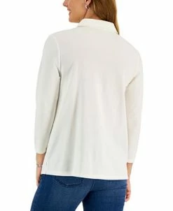 Soft tiers cap sheer bell sleeves, bringing this contemporary split-neckline top from Charter Club to a lovely finish.
