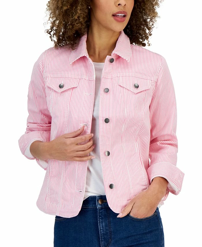 Stylish seaming and candy-colored stripes elevate this look from Charter Club, a denim jacket with polished appeal.
