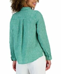 A new spin on stripes freshens this Charter Club top, in comfy all-cotton polished with a cute johnny collar.