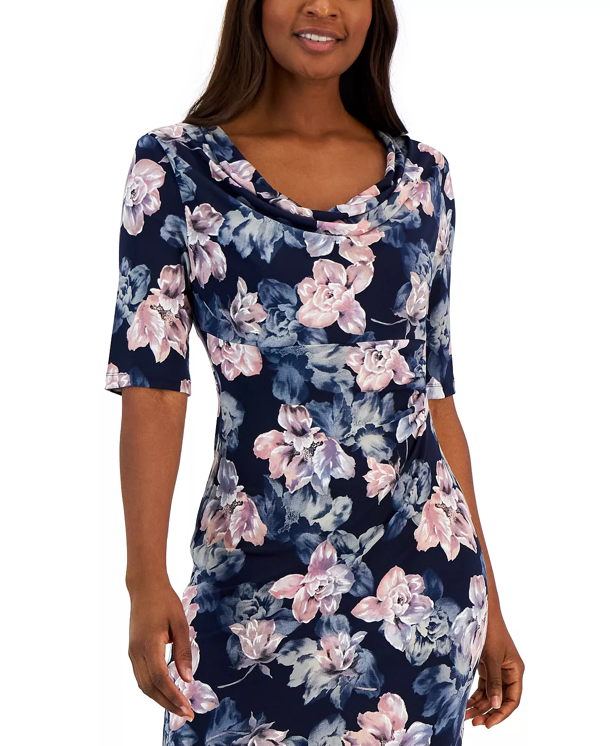 Connected Women’s Floral-Print Elbow-Sleeve Sheath Dress