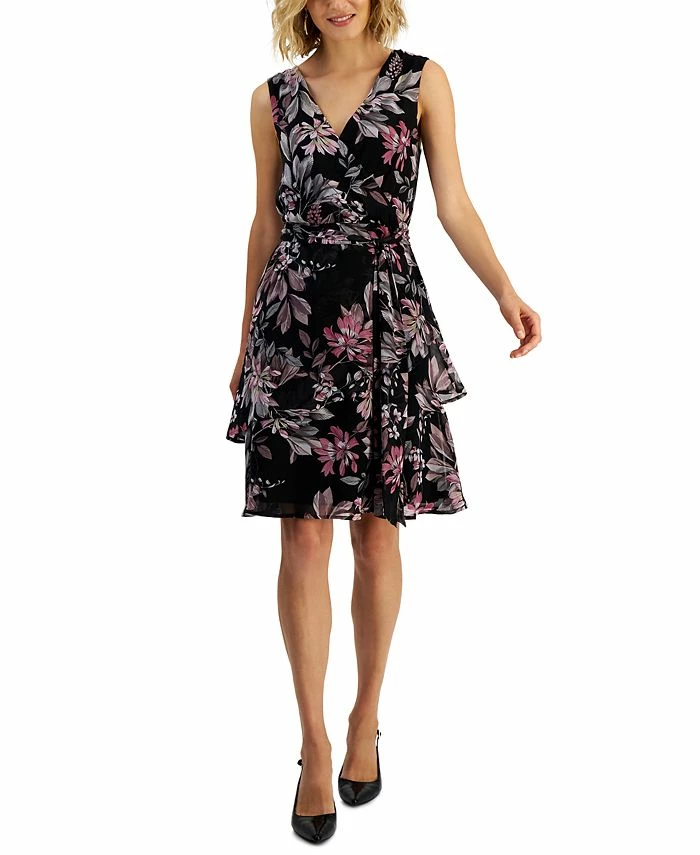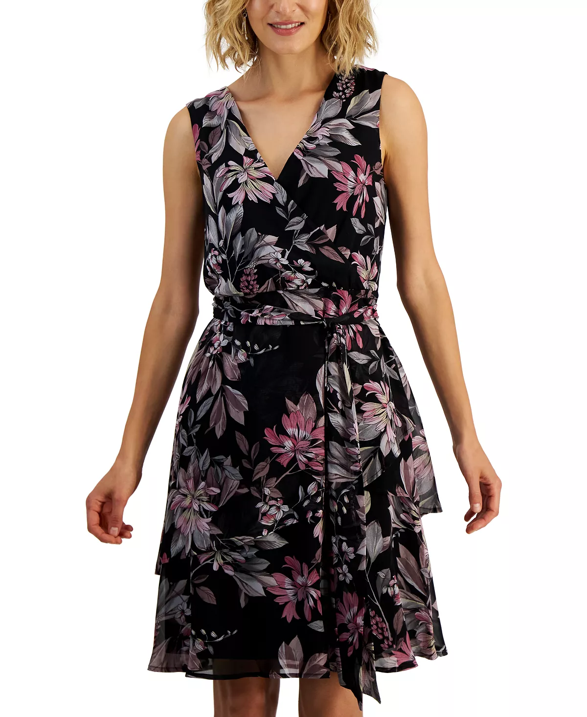 Wrap up a chic look with Connected’s floral-print dress, crafted from airy chiffon.