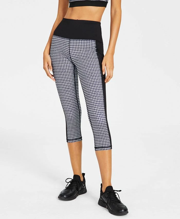 Keep moving in style with a pair of compressive cropped leggings from ID Ideology, designed with a mix of solid and houndstooth-print panels.