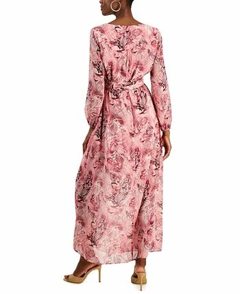 A sleek snake-like print adorns this full and flowing maxi dress by INC International Concepts, finished at the waist for a sash belt for a go-to form-flattering look.