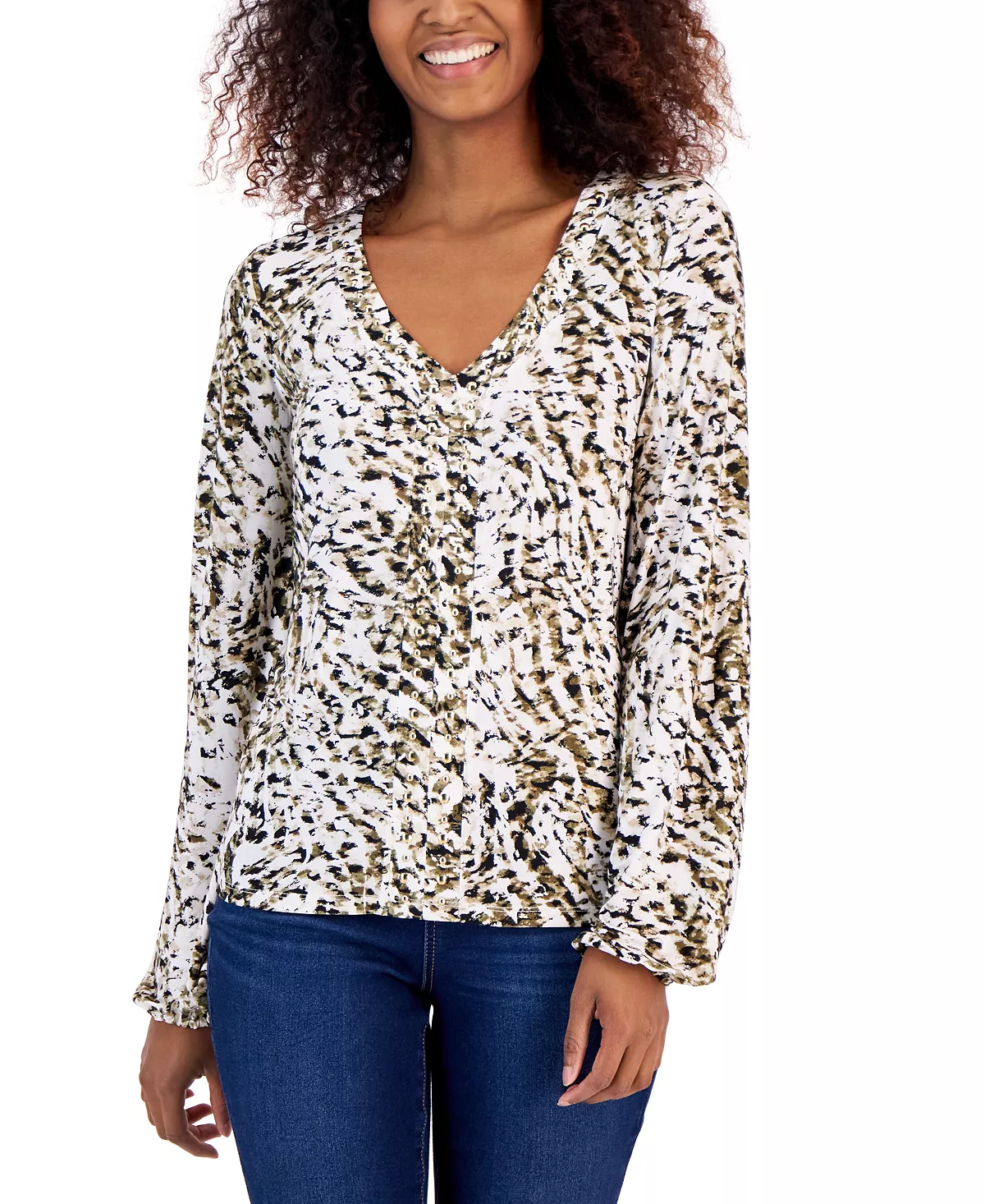 Printed to perfection, this long sleeve top by INC International Concepts is embellished with studding throughout, for a look that will elevate any casual-wear ensemble.